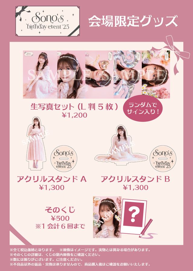 2025年12月14日(日)に開催されます『Sono’s birthday event’25』で会場限定グッズの販売が決定いたしました!